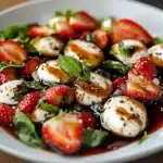 The Balsamic Strawberry Caprese Salad is a refreshing and vibrant dish that impresses with its blend of flavors and textures. Its simplicity and elegance make it a favorite for various occasions, from casual gatherings to special celebrations. With fresh strawberries, creamy mozzarella, and aromatic basil, this salad is not only a feast for the eyes but also for the palate. Whether you stick to the classic recipe or experiment with variations, this salad is sure to be a hit.