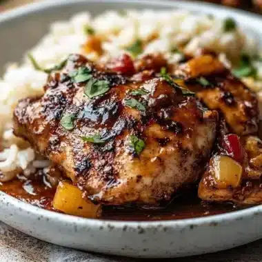1. Presentation: Plate the chicken with sauce drizzled over it. A sprinkle of fresh cilantro adds a pop of color.