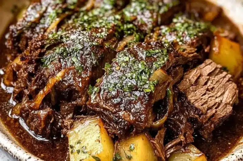 Flavorful Garlic Pot Roast is a wonderful dish that embodies comfort food at its best. This recipe features tender beef, aromatic garlic, and a medley of herbs that create a symphony of flavors. The slow cooking process transforms the meat into a melt-in-your-mouth experience, perfectly infused with savory goodness. As it cooks, your kitchen fills with amazing aromas, making it hard to resist. Whether it’s a family dinner or a gathering with friends, this pot roast will surely impress everyone at the table.